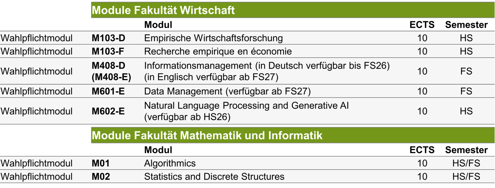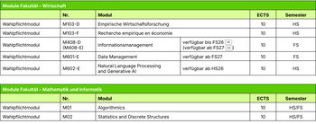 Nähere Informationen zu den Modulen der verschiedenen Major- und Minor-Programmen finden Sie unten.