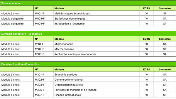 Pro Semester, das sowohl im Herbst- als auch im Frühjahrssemester 14 Vorlesungswochen umfasst, werden in der Regel zwei Module belegt. Dadurch ergibt sich ein ungefährer Zeitaufwand von 25 bis 30 Stunden pro Woche, welchen sich die Studierenden individuell einteilen können. Die Gesamtdauer des Studiums beträgt im Durchschnitt 4.5 Jahre.