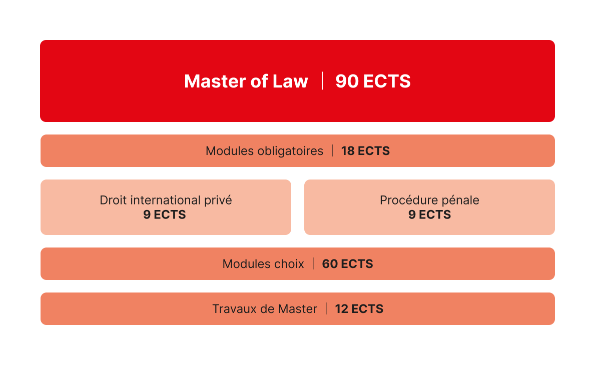 La réussite du Master en droit donne droit à 90 crédits ECTS.