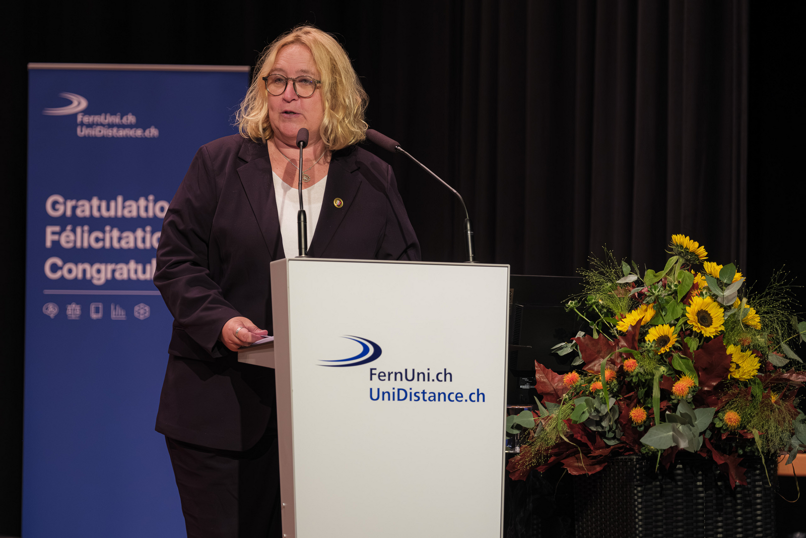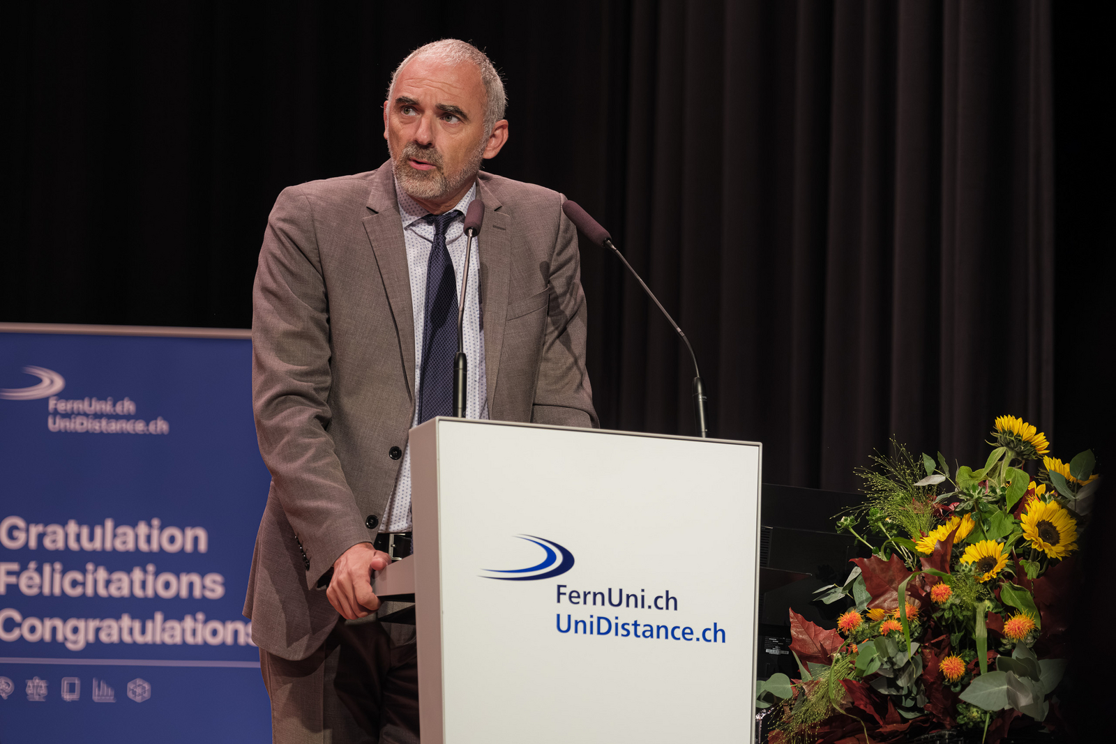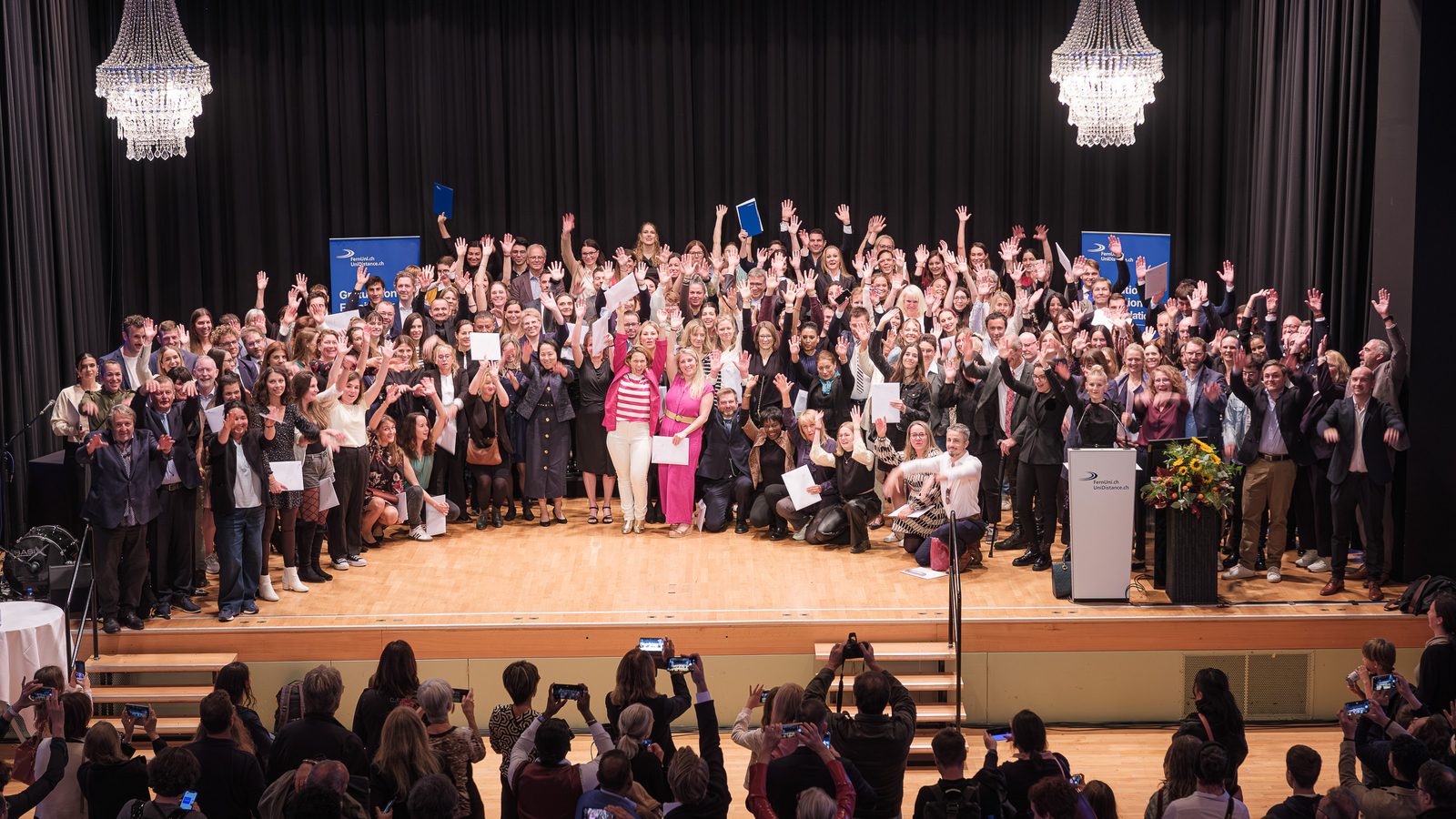 On 27 September 2025, UniDistance Suisse celebrated its 380 graduates at the Simplon Hall in Brig. Among the guests were leading political figures such as Patricia Constantin, President of the Grand Council, and Yves Rey, Head of the Higher Education Department of the Canton of Valais. Discover the highlights in photos and video.