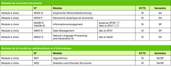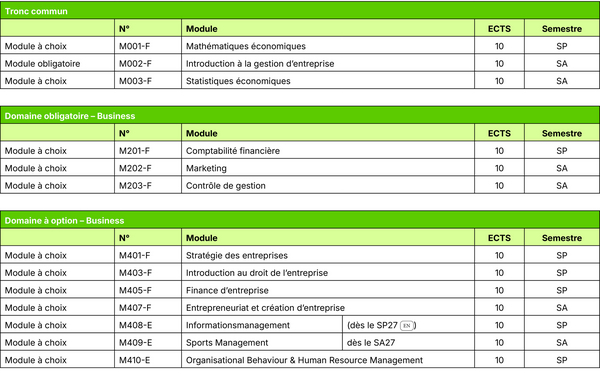 Vous trouverez ci-dessous de plus amples informations sur les modules des différents programmes majeurs et mineurs.